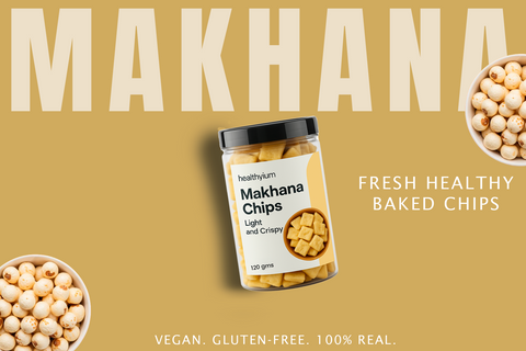 Healthyium Baked Makhana Chips – Low-Calorie, Gluten-Free, Non-Fried, No Maida, No Palm Oil, Light & Crunchy Healthy Snacks for Kids, Office & Dieters (120g)