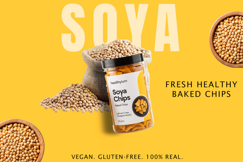 Healthyium Baked Soya Chips – High Protein, 100% Baked, No Maida, No Palm Oil, Gluten-Free Healthy Snacks for Gym, Kids & Everyday Cravings (120g)